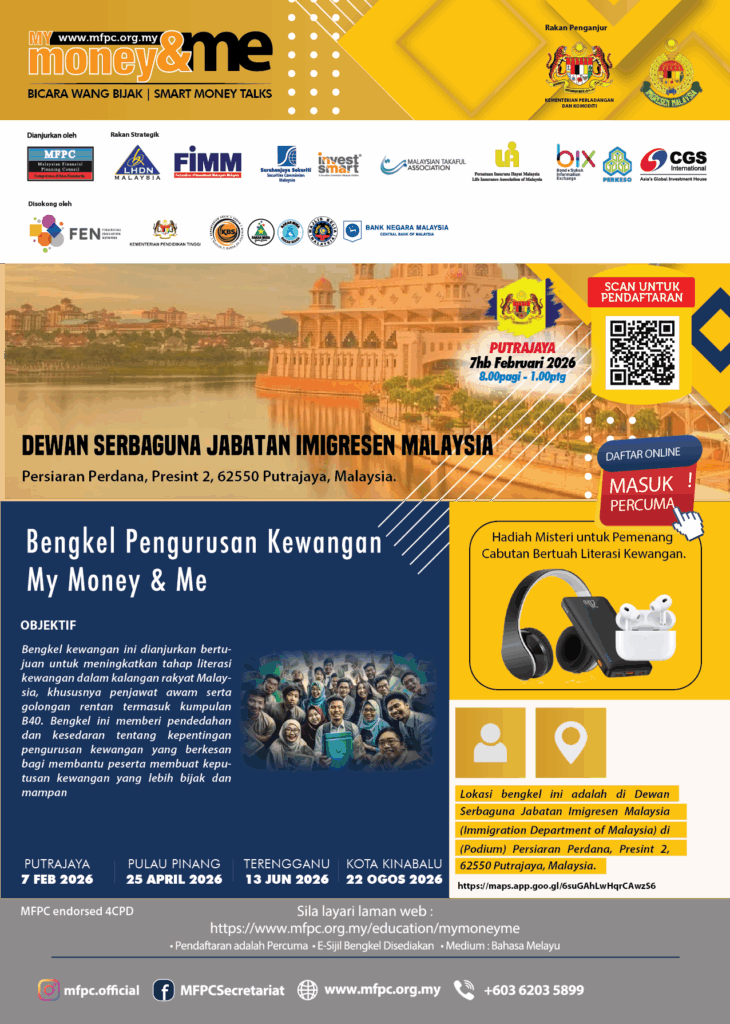 My Money & Me (Putrajaya) | 7th February 2026 | Time : 8.00am – 1.00pm | Venue : Dewan Serbaguna Jabatan Imigresen Malaysia