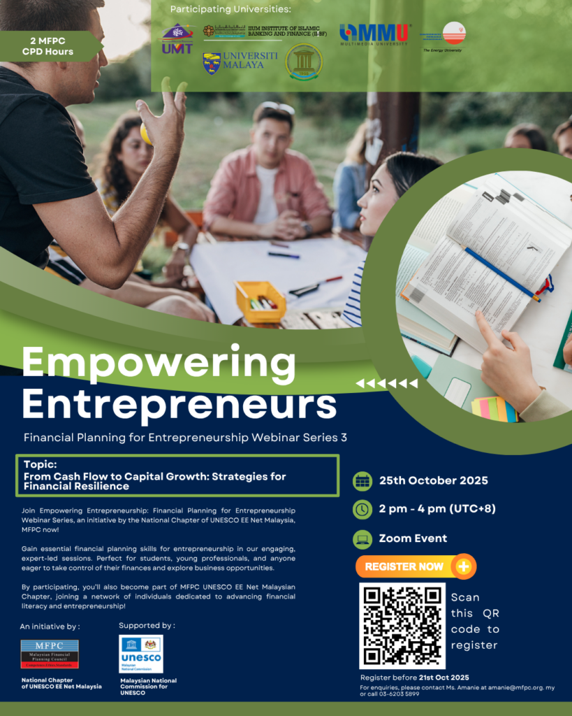 You are cordially invited to attend the Empowering Entrepreneurs: Financial Planning for Entrepreneurship Webinar Series 3 : From Cash Flow to Capital Growth: Strategies for Financial Resilience  to be held as follows :-