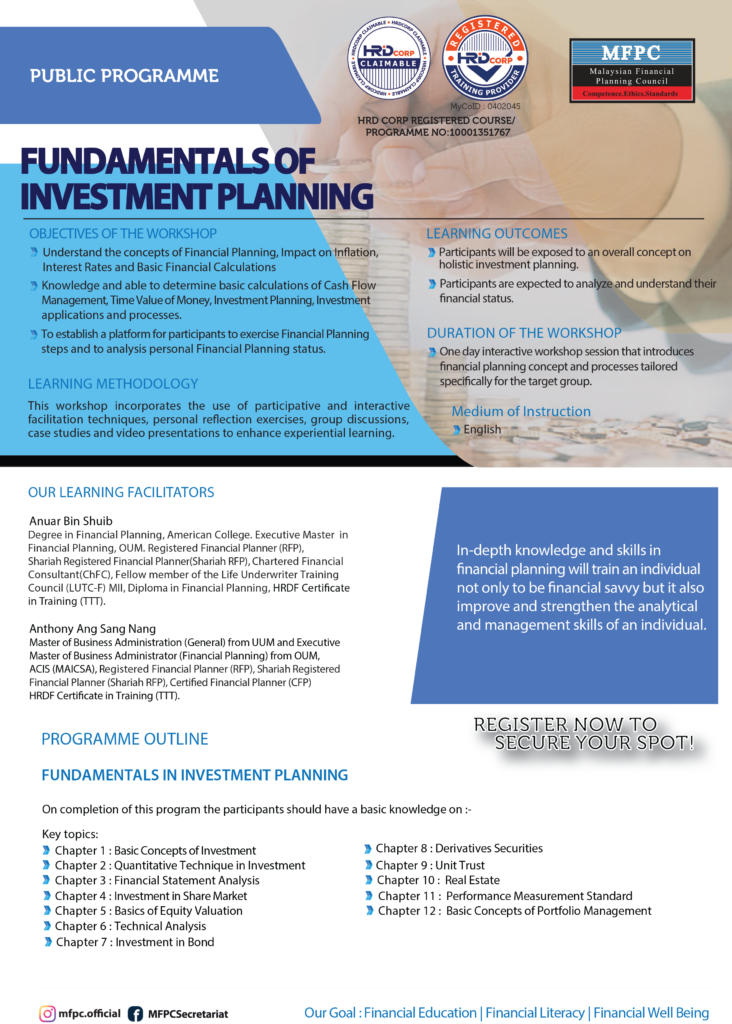 The HRDC Claimable Programme 2024: Fundamentals of Investment Planning is a workshop.