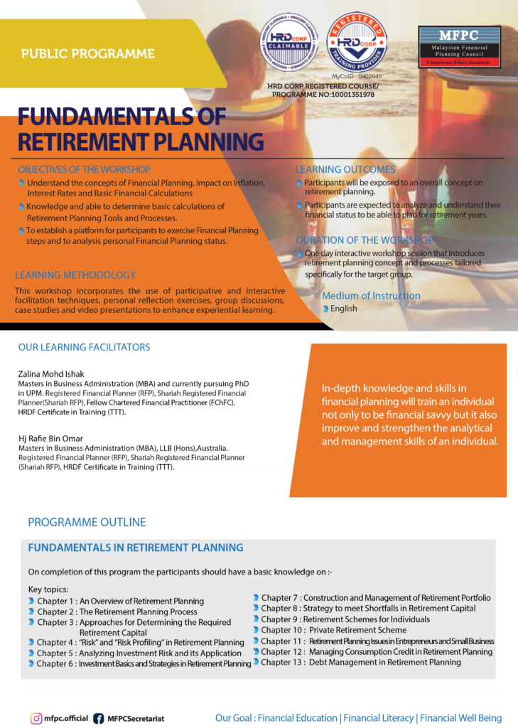 The HRDC Claimable Programme : Fundamentals of Retirement Planning is a workshop.