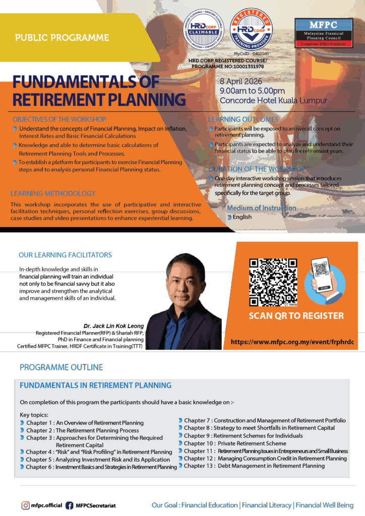 You are cordially invited to attend the HRDC Claimable : Fundamentals of Retirement Planning to be held as follows :-