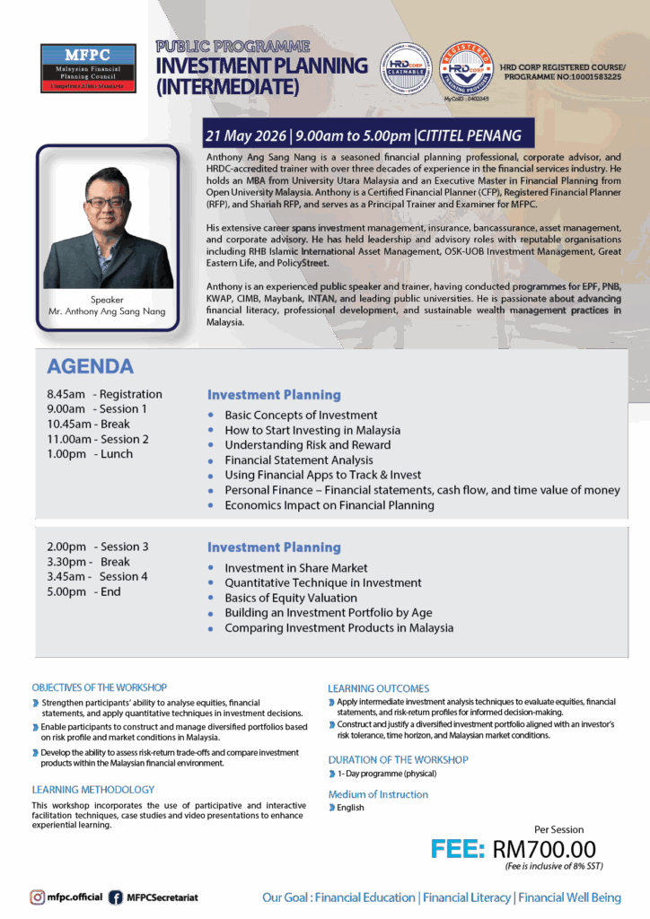 You are cordially invited to attend the HRDC Claimable : INVESTMENT PLANNING (INTERMEDIATE) to be held as follows :-