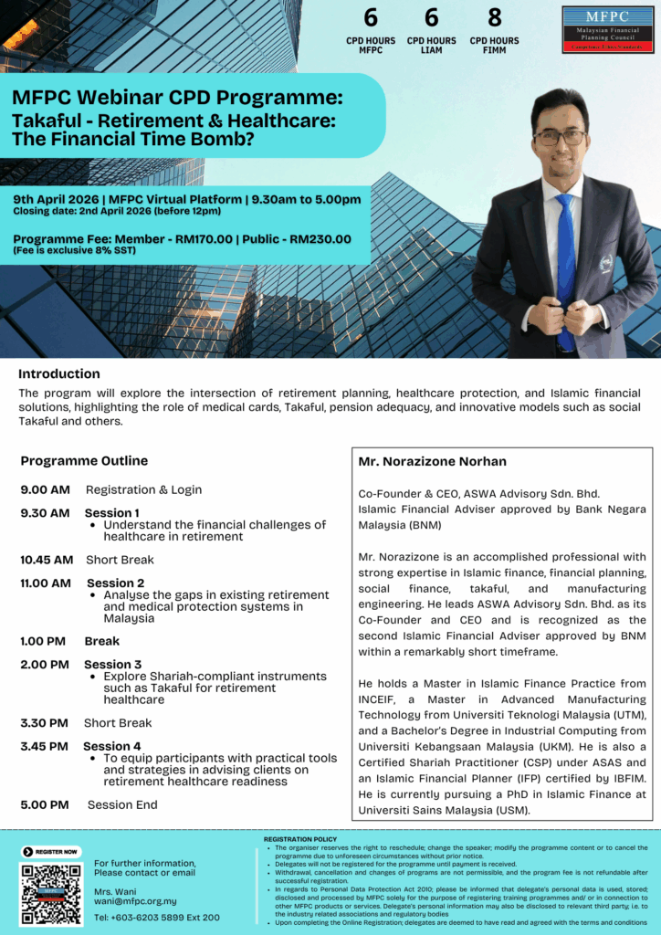 MFPC Webinar CPD Programme: Takaful – “Retirement & Healthcare: The Financial Time Bomb?”