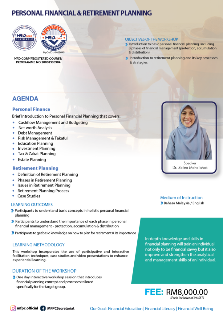 The HRDC Claimable Programme : PERSONAL FINANCIAL & RETIREMENT PLANNING is a workshop.